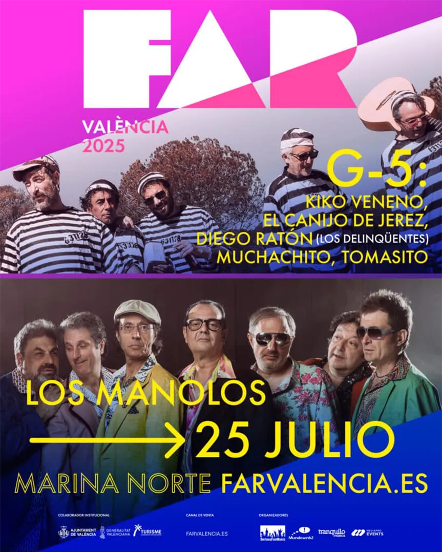 - 🎉 G5 y Los Manolos (25 julio): noche festiva junto a Kiko Veneno, Tomasito, El Canijo, Muchachito y Ratón.
